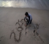 一名男孩在加沙地带代尔拜拉赫的海滩写下“2025”字样(2024年12月31日摄)。2025年的加沙,断壁残垣与临时庇护所共存,枪炮的回响与儿童的诵读声交织...